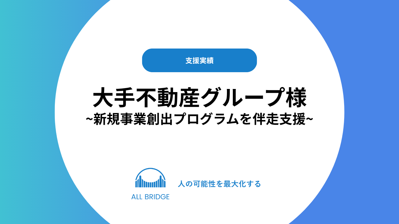 ■ プロジェクト概要 All Bridge株式会社は、大手不動産グループ会社にて開催をしている新規事業創出プログラムにおいて、プログラム設計・運営・ファシリテーション支援を担当しました。 本プログラムでは、社員から新規事 […]