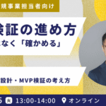 2025年11月9日 / 最終更新日時 : 2025年11月9日 AllBridge Event 【新規事業担当者 向け】MVP検証の進め方|「作る」ではなく「確かめる」──失敗しない仮説検証・MVP設計・MVP検証の考え方 「MVPを作れ」と言われたけれど、何から始めればいいのか分からない。 作ること自体が目的になっていないか、不安を感じる。 ——そんな声を多く聞きます。 本セミナーでは、MVP(Minimum Viab […]