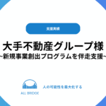 2025年8月1日 / 最終更新日時 : 2025年10月1日 AllBridge News 大手不動産グループ|新規事業創出プログラム ■ プロジェクト概要 All Bridge株式会社は、大手不動産グループ会社にて開催をしている新規事業創出プログラムにおいて、プログラム設計・運営・ファシリテーション支援を担当しました。 本プログラムでは、社員から新規事 […]