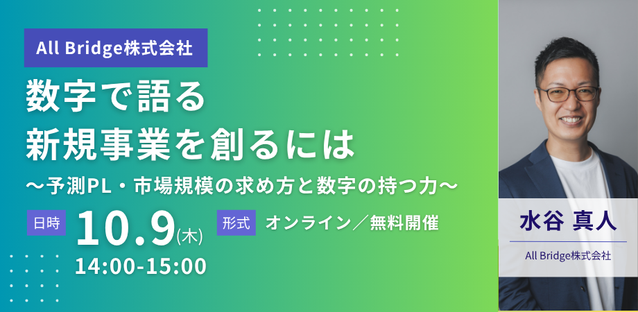 本レポートでは、新規事業を体系的に進めるフレームワーク「フィットジャーニー」の考え方を基礎としつつ、プロジェクトを具体的な数値で裏付け、成功へと導くための市場規模の算出方法(TAM/SAM/SOM)と、予測PL(損益計算書)作成における重要ポイントについて、All Bridge株式会社 代表取締役の水谷真人による講演内容を基にご紹介します。