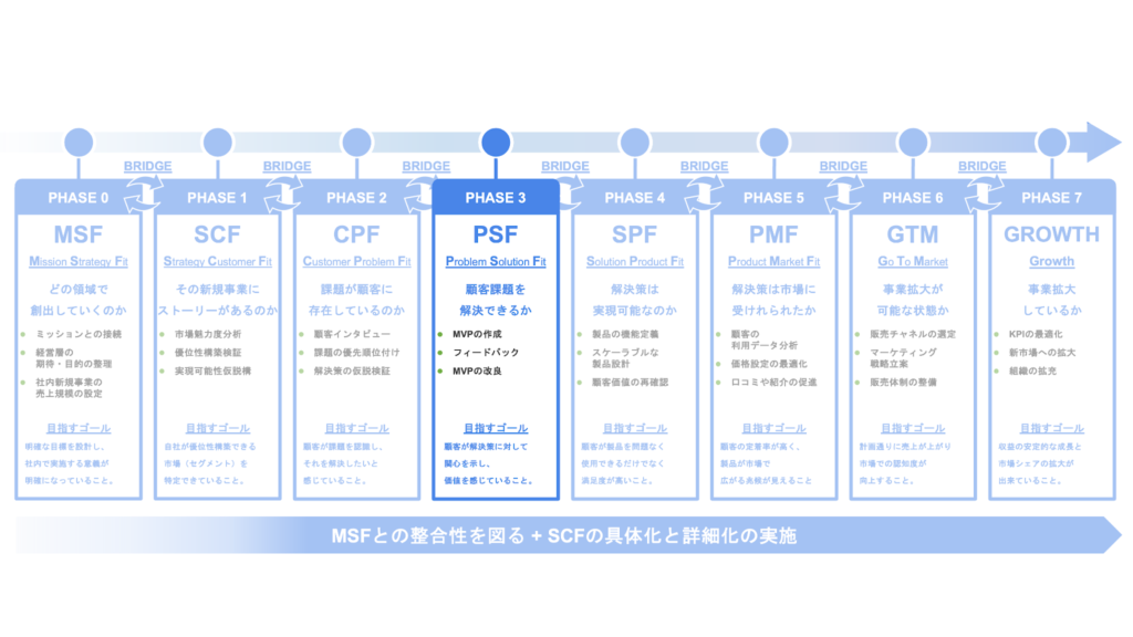 PSF(Problem Solution Fit)の役割は、本格的な投資や開発に踏み切る前に、「その解決策には、顧客が価値を感じ、対価を払うだけの力があるか」を丁寧に証明することにあります。