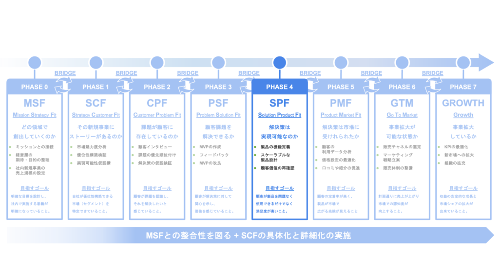 SPFとは、「解決策が具体的なプロダクトとして実装され、顧客がそれを日常的に利用し、高い満足度と継続利用の意向を示している状態」を指します。