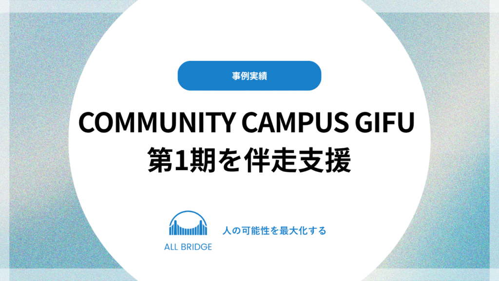 All Bridge株式会社は、一般社団法人ベンチャー・カフェ東京、岐阜市、一般社団法人岐阜みらいポータル協会と連携し、2025年4月より開講された「Community Campus GIFU 第1期」において、プログラム設計・運営・ファシリテーションを一貫して伴走支援しました。